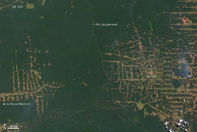 Deforestation in the state of Rondônia in western Brazil. (Photo: NASA)