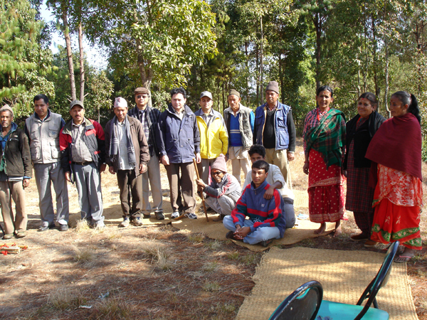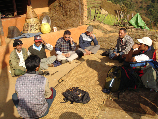 IFRI projects not only include data collection from forest plots but also information gathered from local community members about their use of the local forest. Here, a group of locals gather at the Jyalachitti IFRI Site in Nepal, circa 2008. (Photo: University of Michigan IFRI Network)