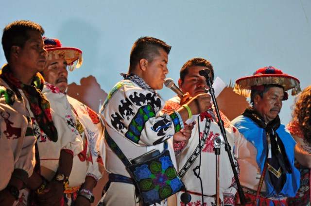 As part of the opening of the Festival of Indigenous Cultures of Mexico City, “Huicholes: The Last Peyote Guardians” was screened last week in the Zócalo, in the historic heart of the city, with 3,000 people attending. The film was presented by traditional Wixaritari (Huichol) authorities from all of the major Wixarika territories, as well as the Wixárika Union of Ceremonial Centers and the Wixárika Regional Council for the Defense of Wirikuta. They were joined by members of the production crew and members of the Ramirez family, featured in the film.