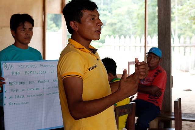 Miguel outlining his ideas on how to strengthen Shawi culture