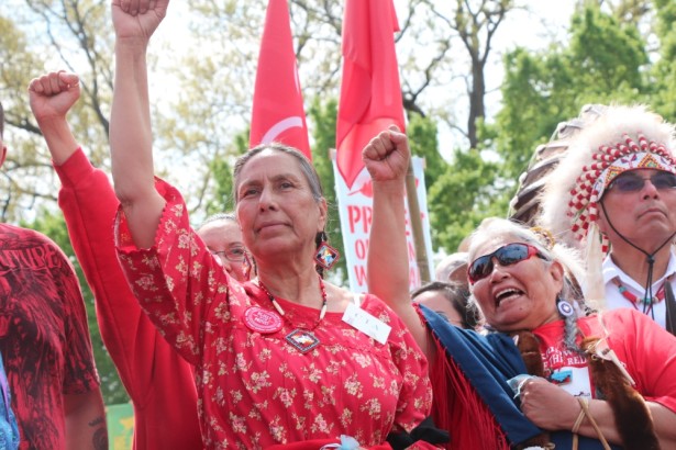 Fossil fuel fights are also bringing together tribes within the indigenous community, some of whom have never had a formal relationship. The tar sands cover parts of Alberta which various First Nations call home, and Crystal Lameman’s Beaver Lake Cree First Nation is among them. Lameman spent much of the week in Washington flanked by Faith Spotted Eagle and Casey Camp-Horinek, two of the leaders who are mobilizing their tribes along the length of the pipeline.
