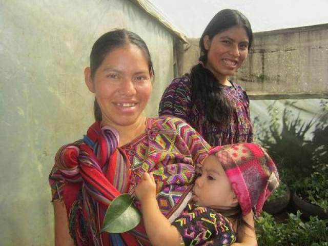 María Terraza Brito junto a su bebé Petronila y Martina (al fondo), estudiantes de la Universidad Ixil. (Foto: Servindi)