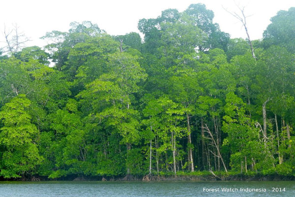 Hutan mangrove di tepian Pulau Kobror, bakal menghilang jika pengembangan tebu terealisasi. (Foto: FWI)